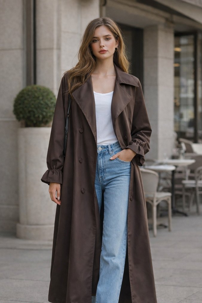 Kadın Kahverengi Uzun Trençkot
