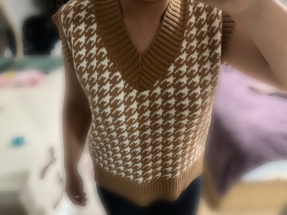 V yaka, kolsuz kahverengi örgü süveter, rahat kesim ve hafif desenli, günlük sokak stili için uygundur. standart bedendir