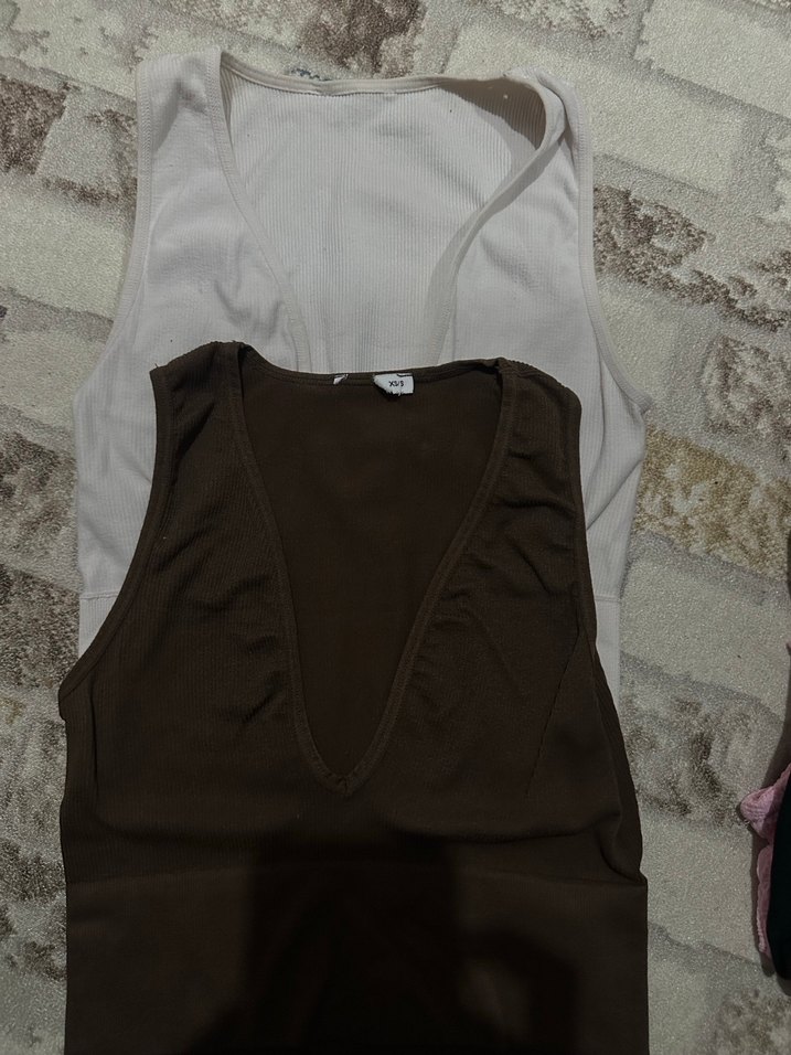 Kadın kahverengi, V yakalı, kolsuz, normal boyda atlet. Sentetik kumaştan yapılmış, günlük sokak modasına uygun sade ve şık bir tasarım. ️ikisi beraber