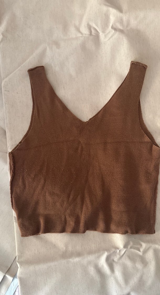 Kadınlar için V yakalı, kolsuz, parlak kahverengi saten görünümlü atlet. Sentetik yumuşak kumaştan, vücuda oturan ve normal midi boyda. ✨