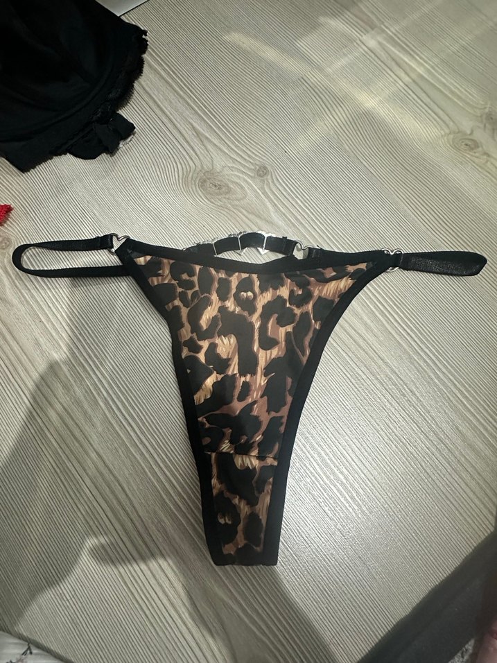 Kadınlar için kahverengi yılan desenli, ayarlanabilir bantlı, rock punk ve athleisure tarzını birleştiren normal midi boy tanga.