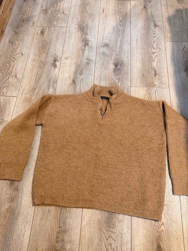 Kadınlar için uzun kollu, yuvarlak yakalı, bol kesim yün örgü kahverengi kazak. Rahat ve sade tasarımıyla günlük kullanıma uygundur. Trendyolmilla markadır, bir kısım tüylenmesi vardır, makine ile temizlenir.