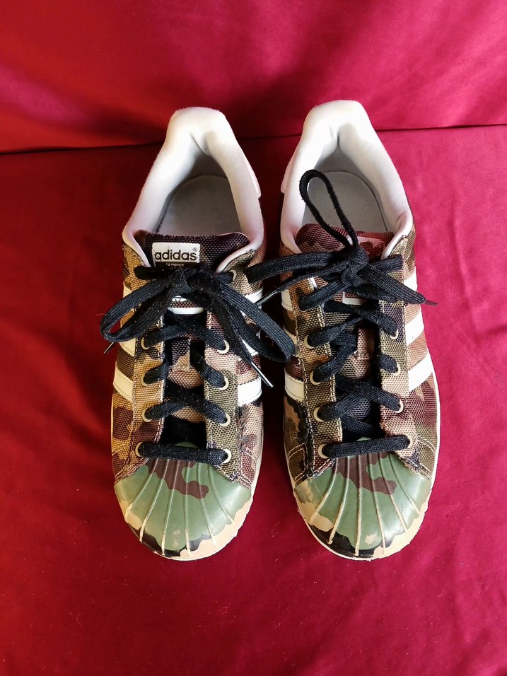 Kadınlar için Adidas marka, renkli kamuflaj desenli, pilili yüksek topuklu ve kauçuk tabanlı sneakers. ürün çok temiz 38 numara Adidas'ın klasik modellerinden biri ayakkabının içi dışı hijyenik spreylerle temizlenmiştir