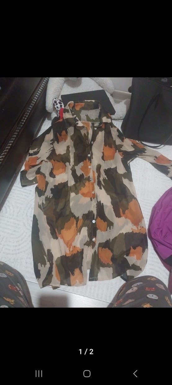 Kadın Kamuflaj Desenli Düğmeli Gömlek