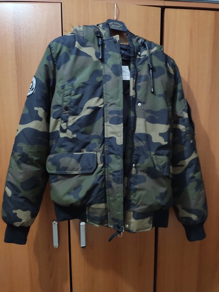 kamuflaj desenli, fermuarlı mont, rahat ve şık bir sokak stili sunar. az kullanılmış hiçbir sorunu yok tertemiz mont