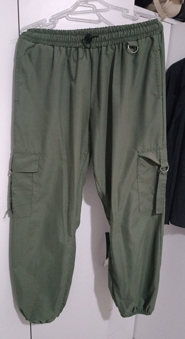Kadınlar için kemerli, kamuflaj desenli, bol kesim kumaş pantolon. Sentetik kumaştan, midi boy ve rahat outdoor stiline uygun.