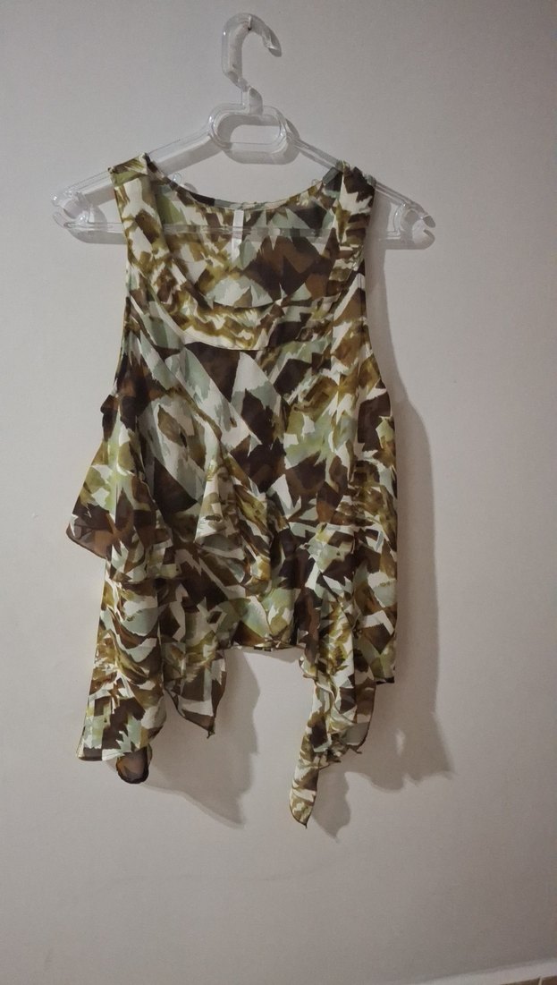 Kadın Kamuflaj Desenli Kolsuz Drapeli Bluz