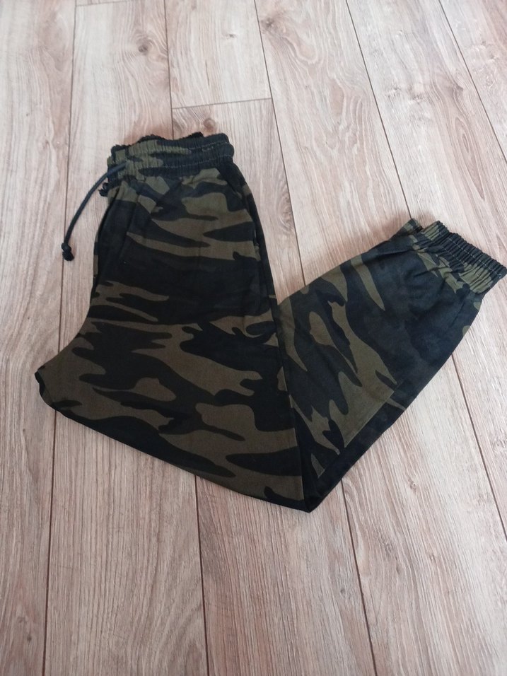 Kadınlar için bol kesim, kamuflaj desenli, midi boyda, sentetik kumaştan yapılmış pantolon, dış mekan kullanımı için uygundur. ebatlar bel 45 basen 50 boy 88