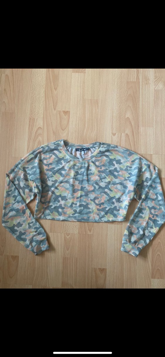Kadın kamuflaj desenli, uzun kollu, bol kesim ve yuvarlak yakalı sweatshirt. Yumuşak sentetik kumaştan üretilmiş, rahat ve şık bir sokak stili sunar.