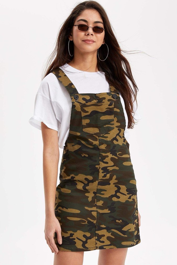 Kadın Kamuflaj Midi Salopet Elbise