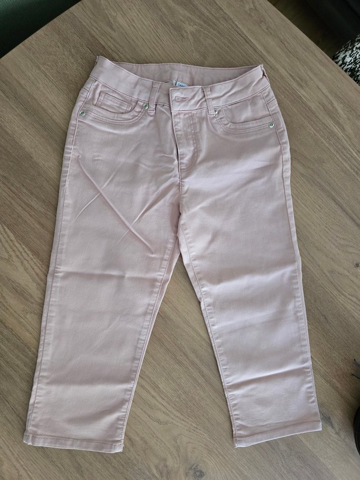 Düz desenli, rahat kesim kadın kapri pantolonu.