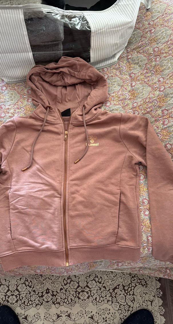 Pastel kahverengi kapüşonlu sweatshirt, fermuarlı ve nakış detaylıdır. Uzun kollu, vücuda oturan kesimiyle rahat ve sıcak bir yapıya sahiptir.