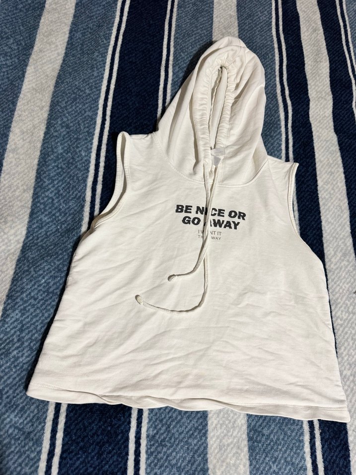 Kadın Kapüşonlu Kolsuz Sweatshirt Beyaz