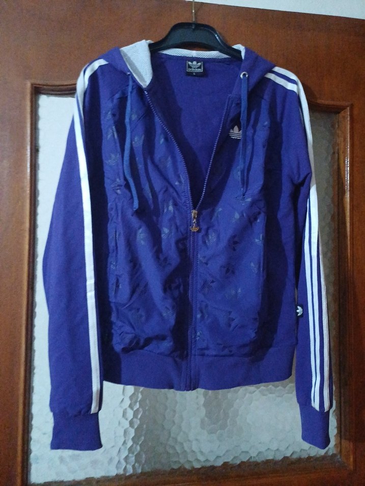 Kadınlar için kapüşonlu, fermuarlı ve uzun kollu bu dar kesim ceket, yumuşak ve sıcak kumaştan yapılmıştır. Koyu mavi renkli ve kollarda beyaz şeritler bulunur.