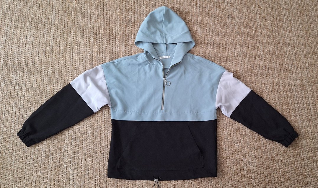Kadınlar için kapüşonlu, bol kesim sweatshirt. Yumuşak sentetik kumaştan, uzun kollu ve fermuarlı.
