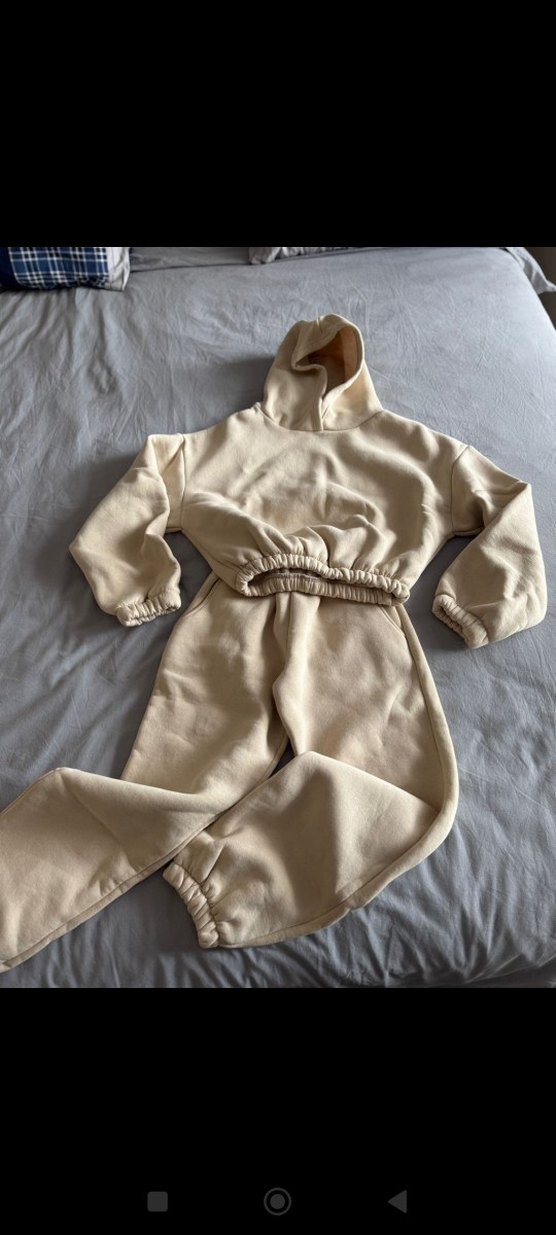 Kadınlar için kapüşonlu, uzun kollu ve salaş kesim midi uzunluğunda eşofman takımı. Yumuşak ve sıcak kumaştan, pastel tonlarda, rahat ve şık bir günlük kombin.