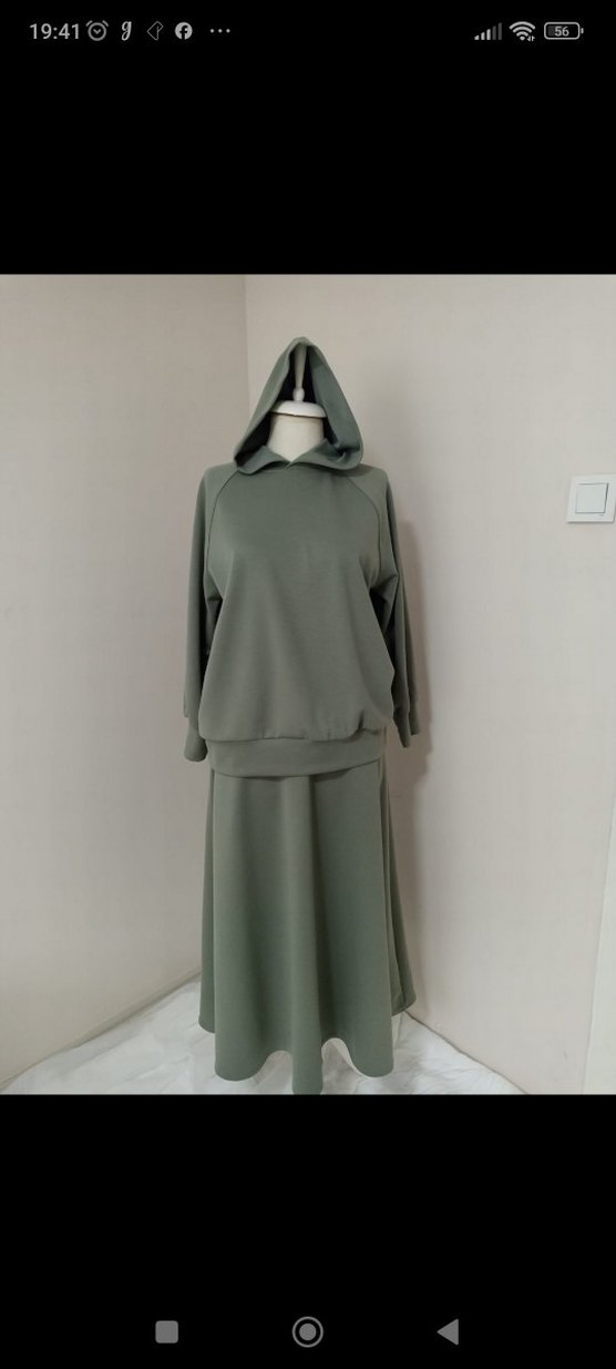 Kadın Kapüşonlu Uzun yeşil alt üst takim