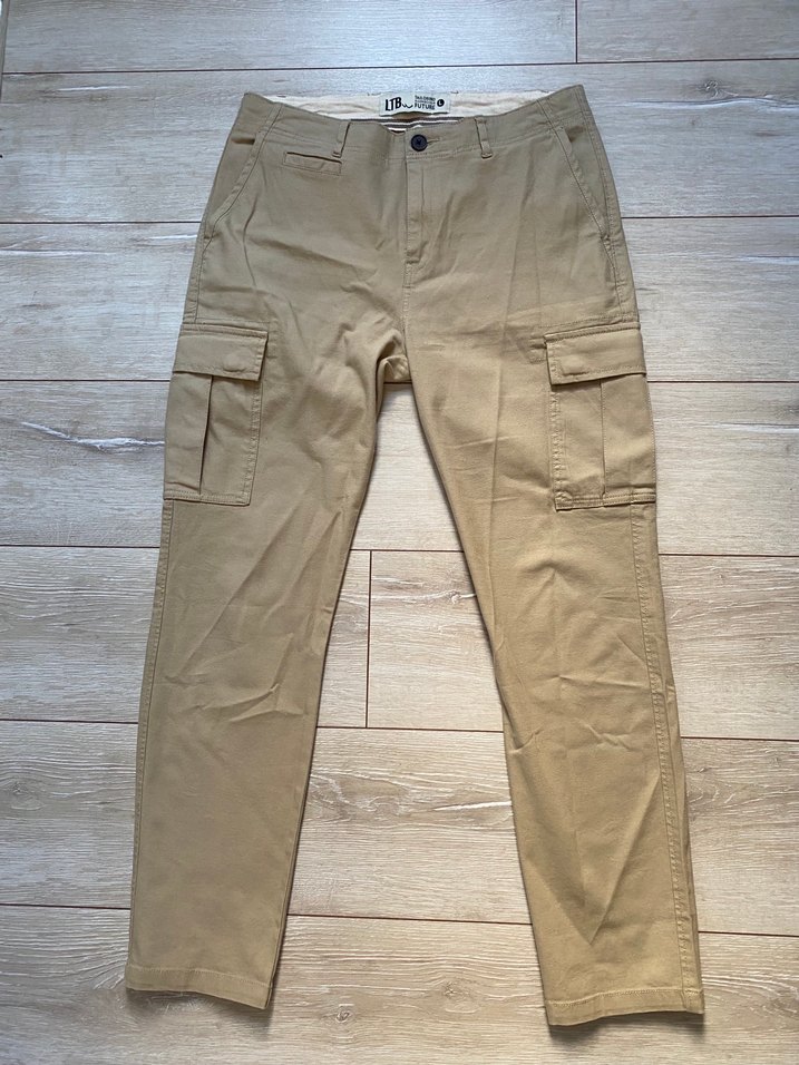 Bej renkte kargo pantolon.