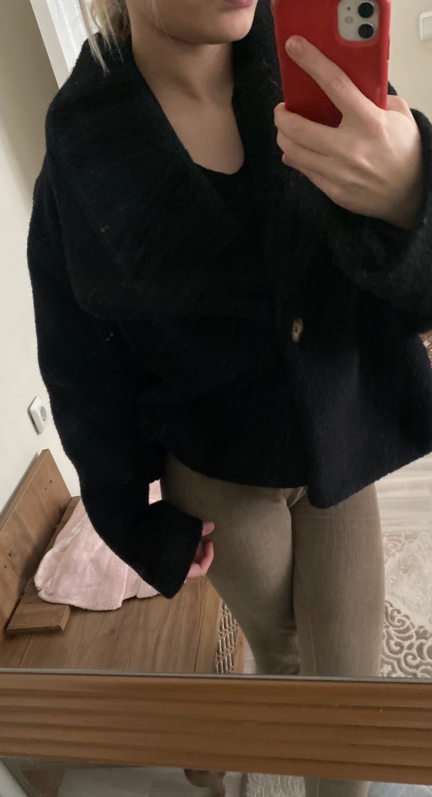 Kahverengi yün kaban, bol kesim, yaka detaylı ve kürklü tasarımıyla rahat ve trend günlük stil sunar.