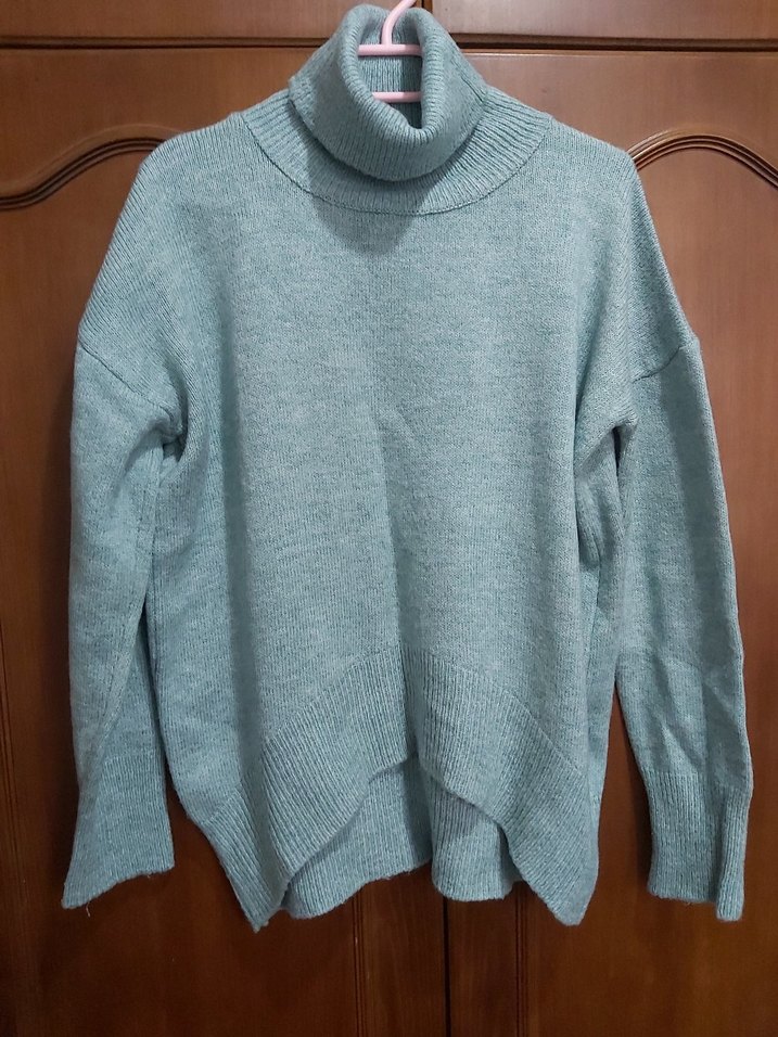 Yumuşak triko kumaştan, boğazlı ve uzun kollu, bol kesim gri kadın kazak. Günlük kullanıma uygun, desen içermeyen rahat bir model. deformesi yoktur