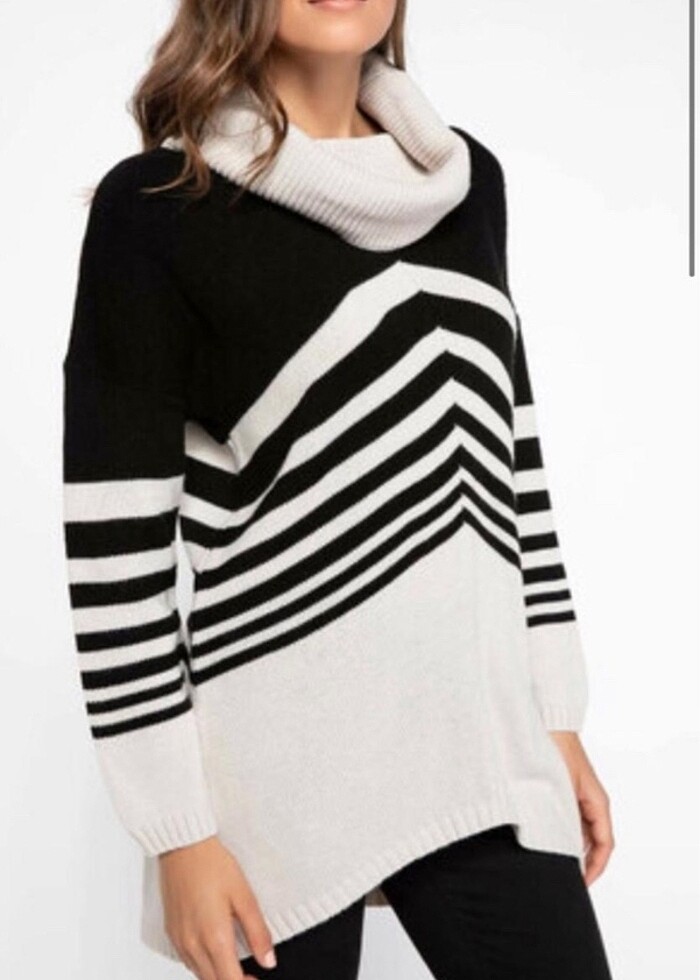 Tayt ile rahat kullanabileceğiniz uzunlukta ağırlığı olan bir kazak. Kullanışlıdır. Bir kaç defa anca giyilmiştir. Yeniden farksız.