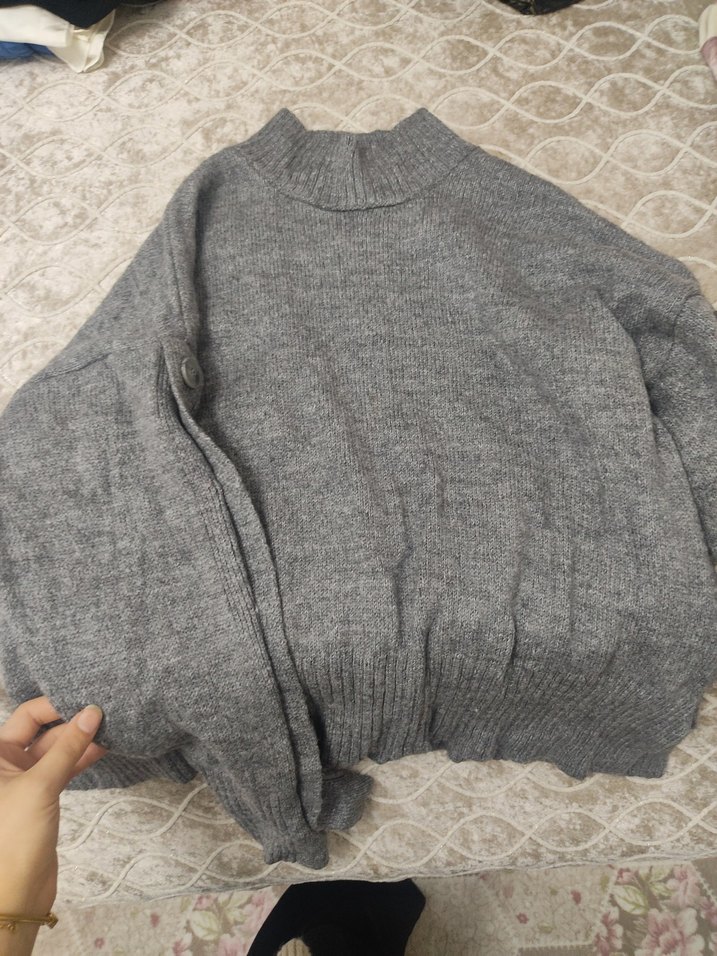 Boğazlı yaka ve uzun kollu, gri örgü kazak, rahat kesimiyle günlük kullanıma uygun konforlu bir modeldir. LC Waikiki den alındı defosu yok tertemizdir