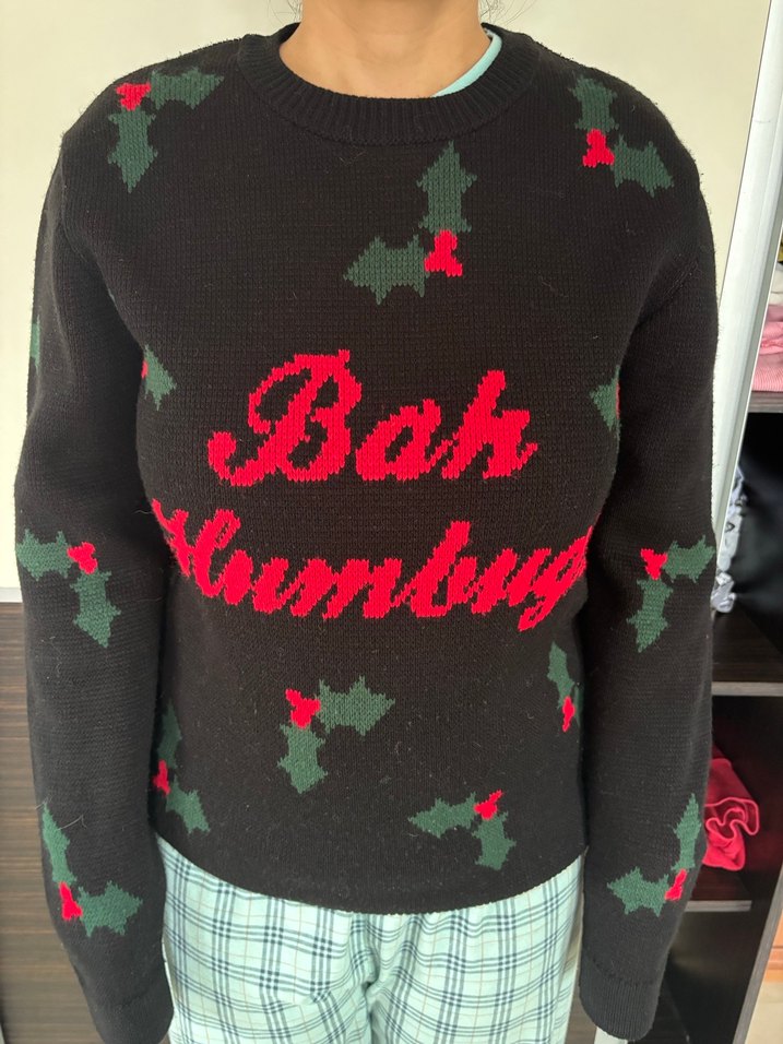 , uzun kollu, yuvarlak yaka, baskılı triko kazak. ve çam yaprağı desenleriyle cesur ve rahat bir stil sunar.