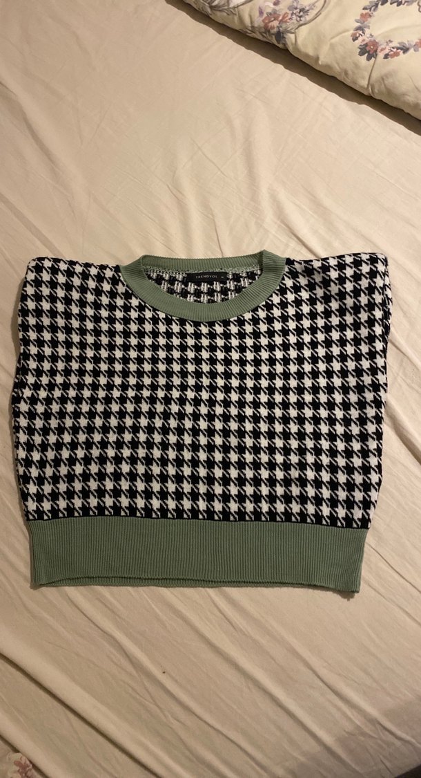 Kadın Kazayağı Desenli Örme Süveter