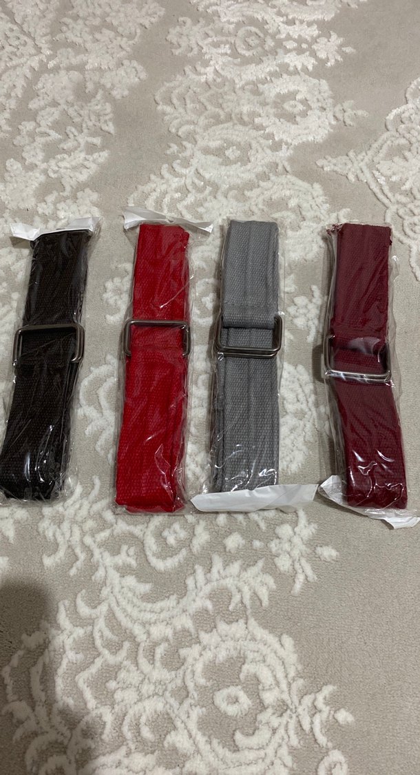 Keten kumaştan, kırmızı ve gri renklerde, kemerli kadın kemerleri. Trendy ve rahat tarzlar için uygundur.