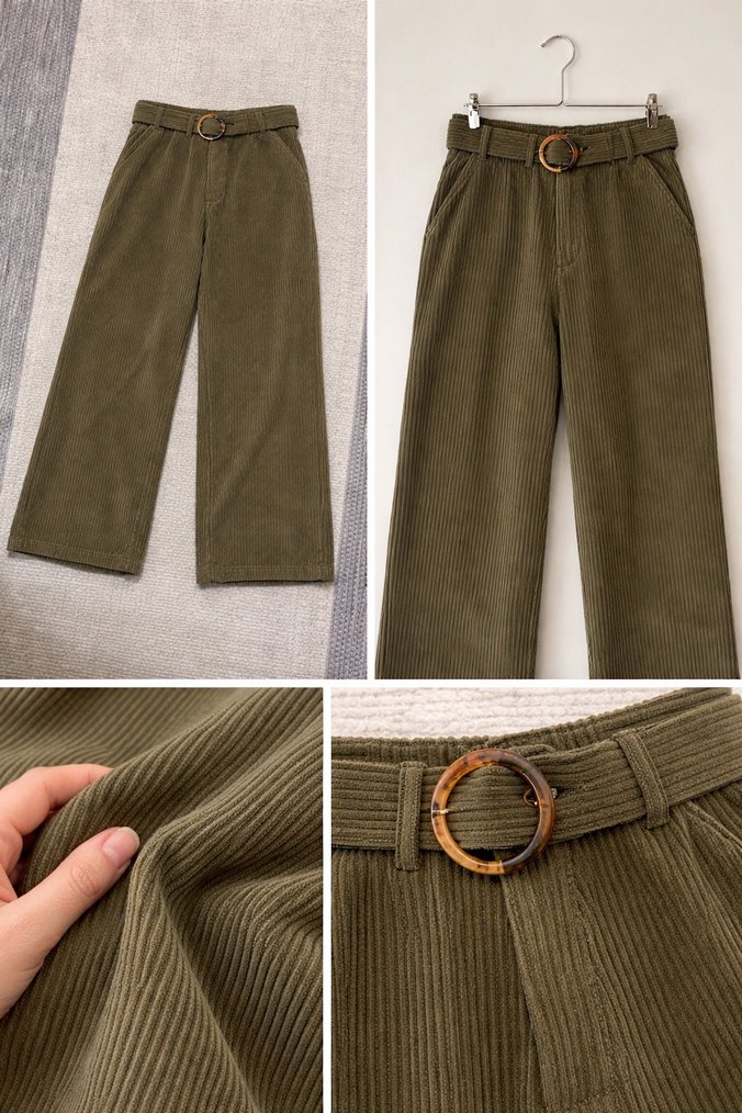 Kadınlar için kemerli, bol kesim ve midi boy kadife pantolon. Yumuşak süet kumaştan, desensiz ve günlük kullanıma uygun rahat bir model.