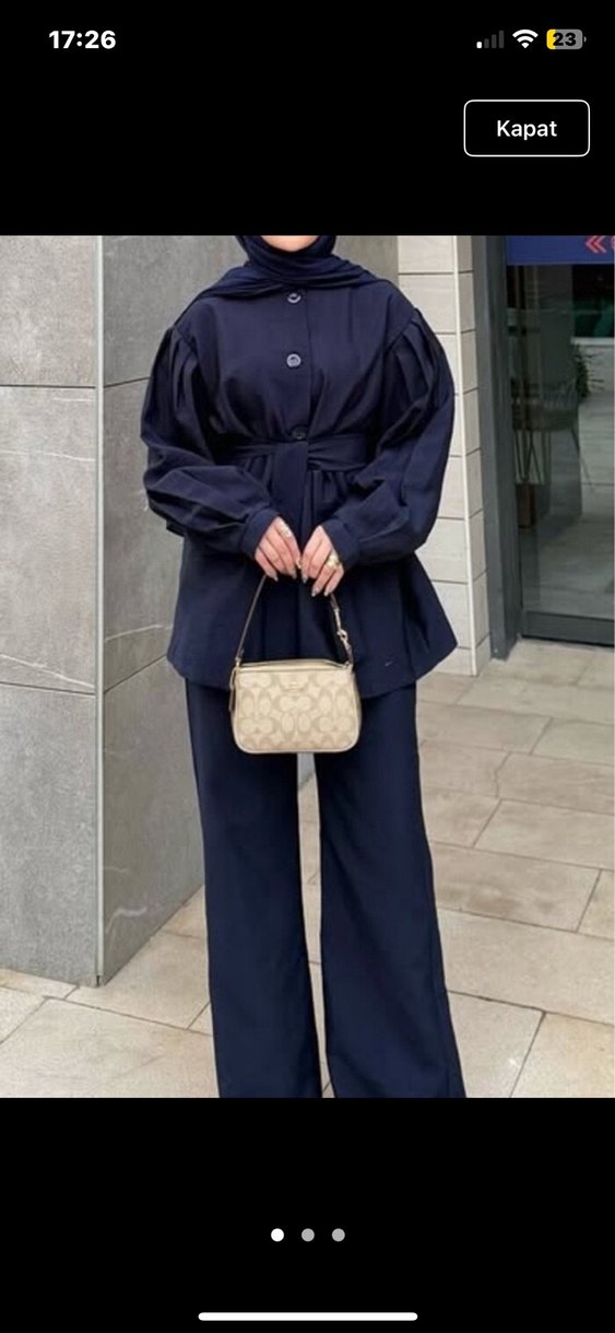 Kadınlar için kemerli, uzun kesim, yakası kesimli ve askılı kollu kumaş takım. Ofis ve günlük şıklık için uygun, koyu camel renkte, rahat kesim. 1 bedendir en fazla iki kere gıyılmsıtır , paça boyu yaptırılmıştır , 165 ten uzun a kısa olur