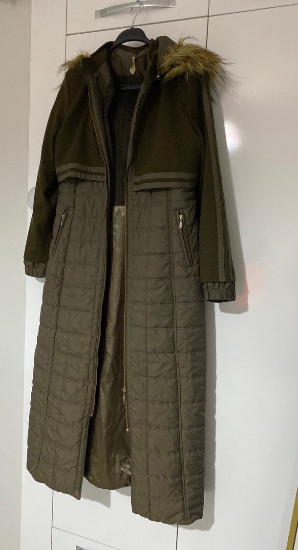Kadın KemerliUzun Haki Mont Çok kaliteli bende uygulamadan aldım