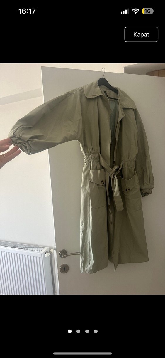 Keten kumaştan, kuşaklı ve uzun kollu, notched yaka detaylı bol kesim kadın trençkot, günlük kullanıma uygun.38 beden giyinen biri olarak çok rahat oluyor