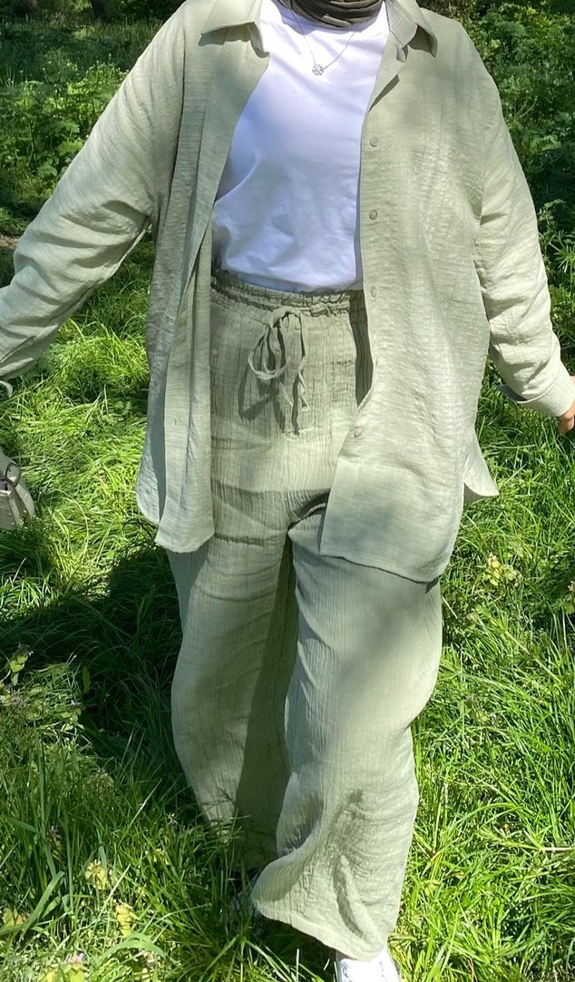 Kadın Keten Rahat Kesim Midi Takım