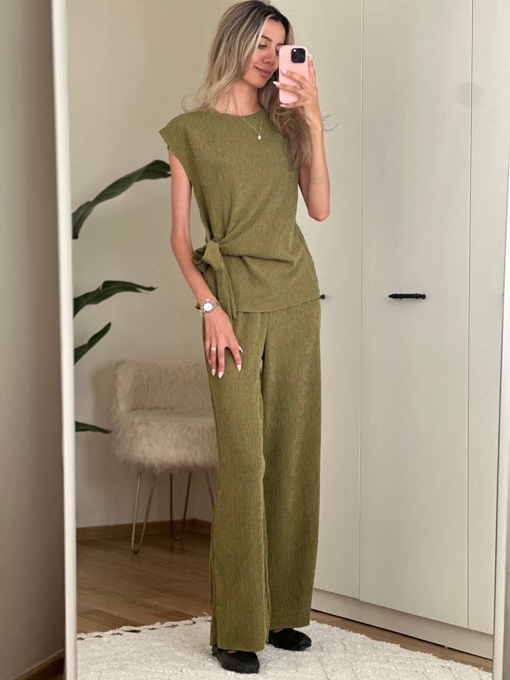 Kadın keten kumaştan, salaş kesim, kolsuz ve bisiklet yaka uzun tulum. Desensiz, rahat ve şık, günlük kullanıma uygun.