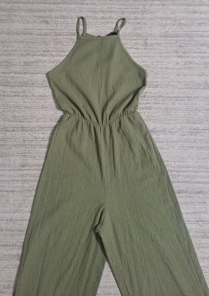 Kadınlar için yüksek yakalı, kolsuz, bol kesim uzun yeşil tulum. Günlük kullanım için rahat ve sade bir şıklık sunar. üründe defo yok.renk solmasi yok.boyunda oynama yok.orjinal marka.bazı ürünler kendini göstermez bu şekilde. üstte duruşu çok güzel.belinede hasır bir kemer takıldığında çok çok şık ve güzel duruyor.bence tam kalıp