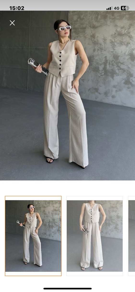 Bej keten yelek şık takım