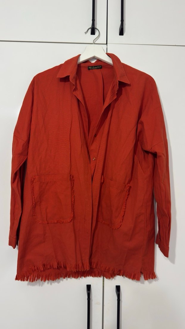 Alt kısmında püskül detayı vardır ister ceket ister gömlek olarak kullanılabilir L bedendir