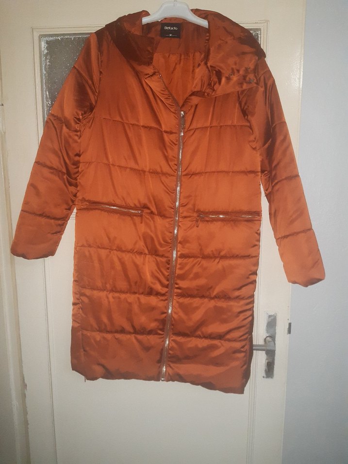 Parlak kahverengi sentetik kumaştan, fermuarlı ve cepli, uzun kollu, kesimi vücuda oturan kadın kışlık mont. Rahat ve şık sokak stili için uygundur. Hiç giyilmesi m vede l beden için uygundur