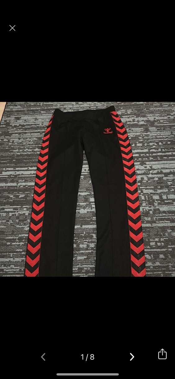 Kadınlar için kırmızı baskılı yan şeritlere ve fermuarlı ceplere sahip dar kesim eşofman altı. Sentetik kumaştan, spor ve günlük kullanım için uygundur. ♀️