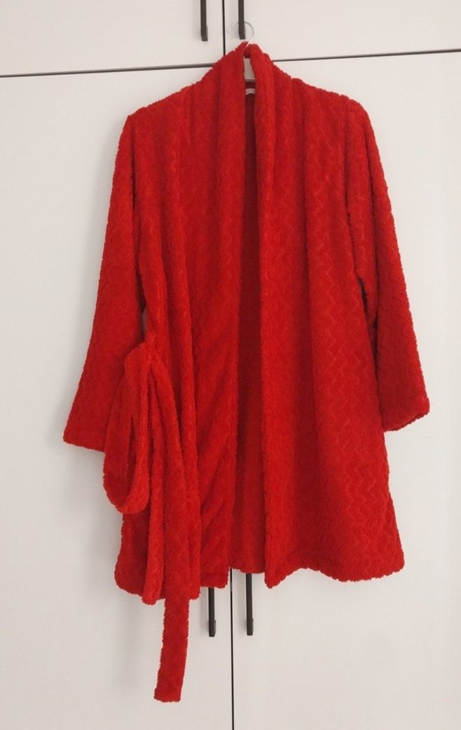 Kadınlar için uzun kollu, bol kesim, canlı kırmızı renkte bohem tarzda rahat ve yumuşak dokulu midi uzunlukta sabahlık. Ayarlanabilir konfor için kemerli. ️