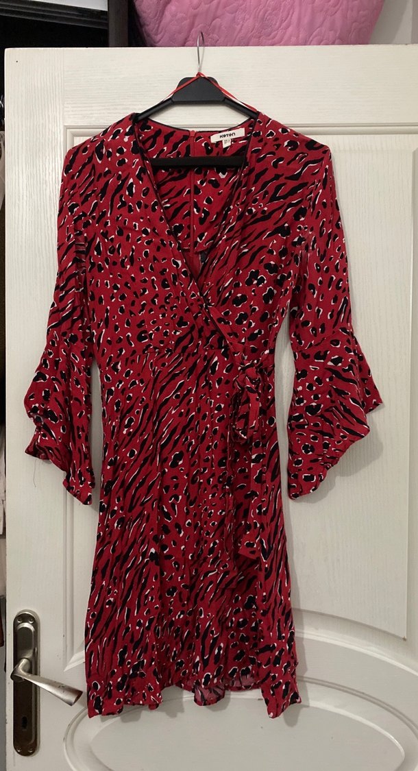 Kadınlar için koyu kırmızı tie-dye desenli, bol kesim, uzun kollu bohem tarzda uzun elbise. Rahat ve akışkan bir görünüm sağlar. Boyu 90 cm eni 40 cm