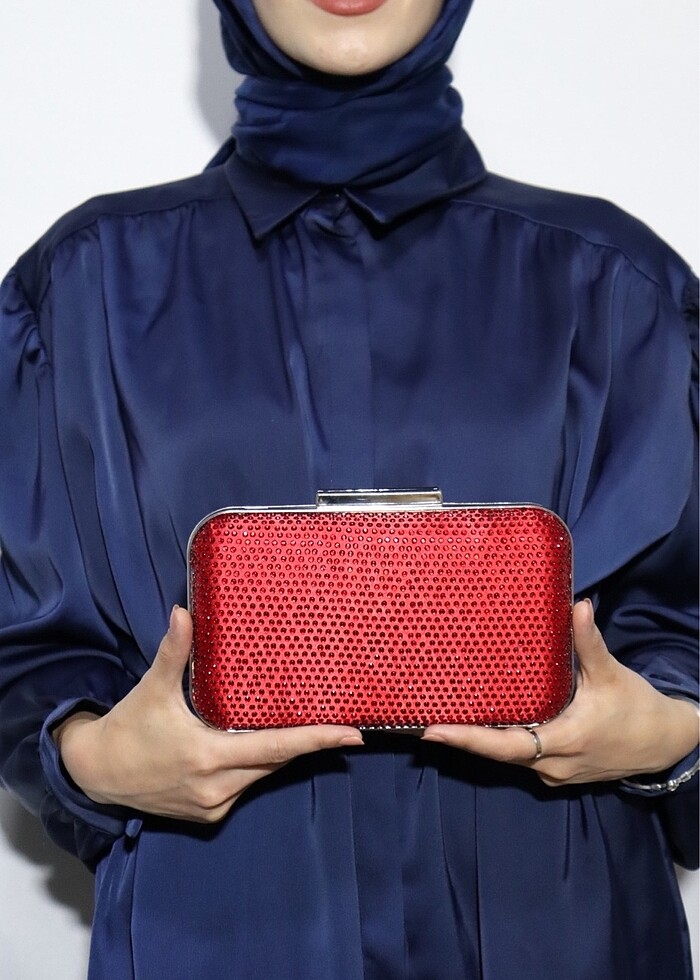 Kadın Kırmızı Boncuklu Abiye Çanta