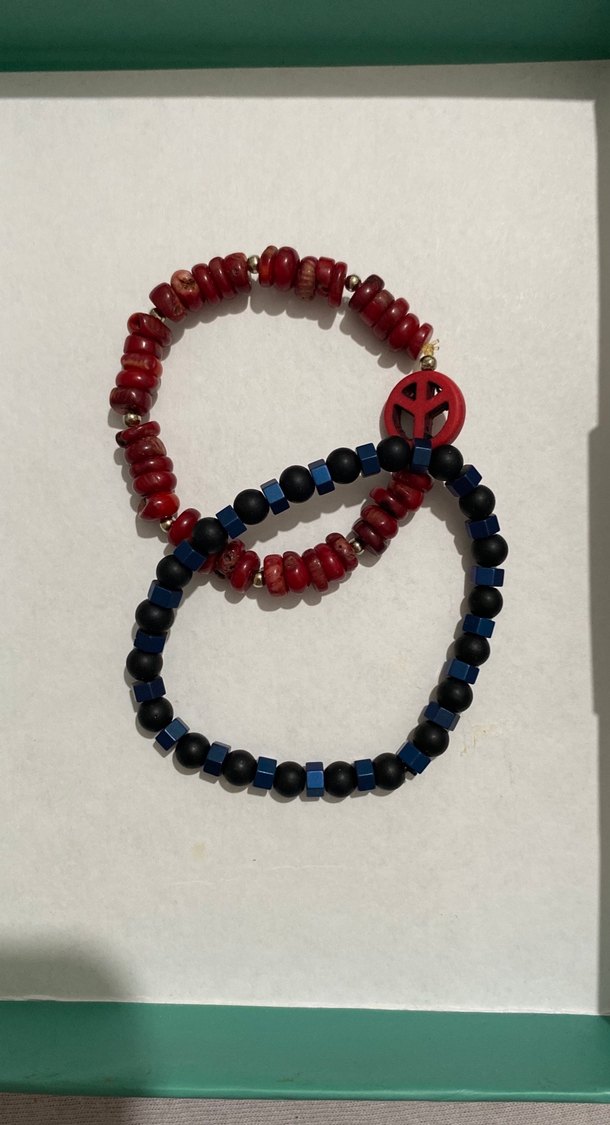 Koyu kırmızı renkte, barış işareti figürlü boncuklu kadın bilekliği. Bohem ve retro tarzını yansıtır. Günlük kullanıma uygundur. ✨