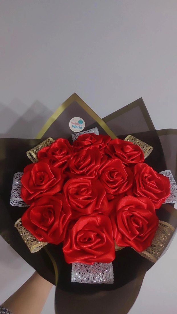 Kadın Kırmızı Çiçekli Broş Kurdeleli