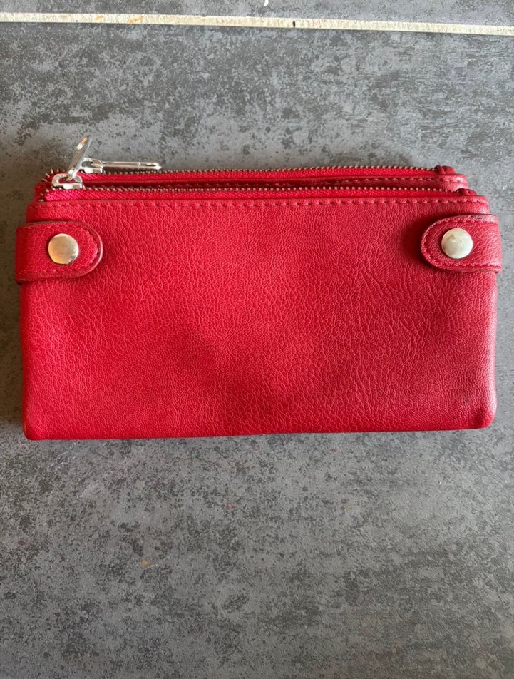 Kırmızı deri cüzdan, fermuarlı ve sade tasarıma sahiptir. Günlük kullanıma uygun, çağdaş ve desen içermeyen şık bir modeldir.