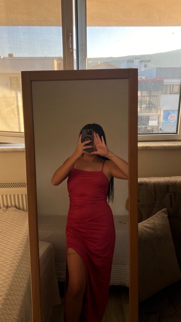 Kadın Kırmızı Drapeli Midi Elbise