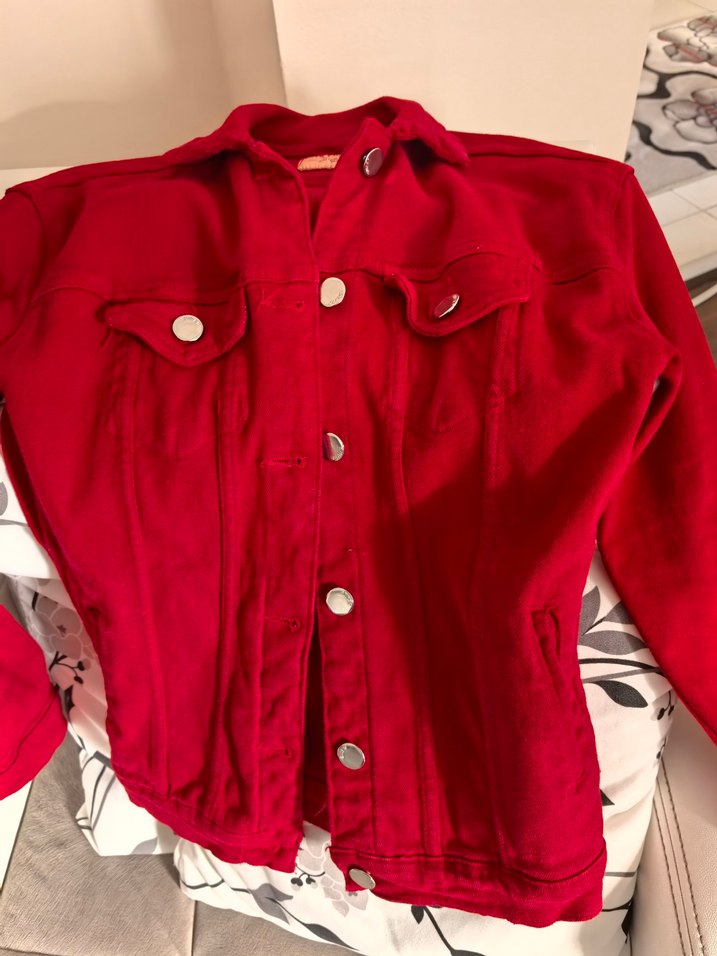 Kırmızı kot mont 2 kere giyildi