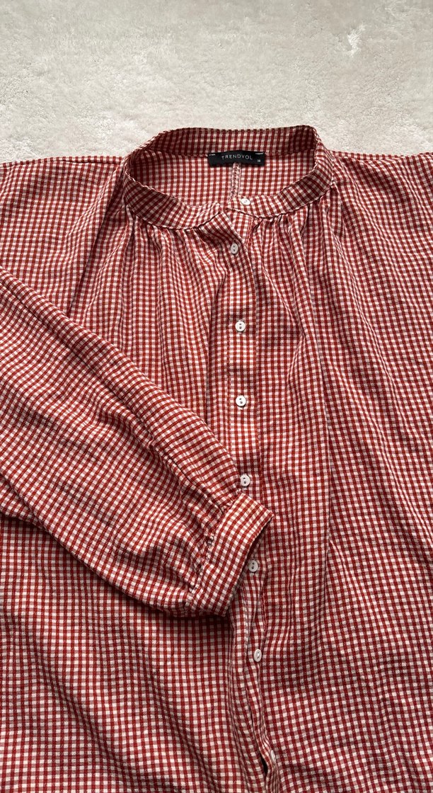 Kadın Kırmızı Düğmeli Keten Gömlek