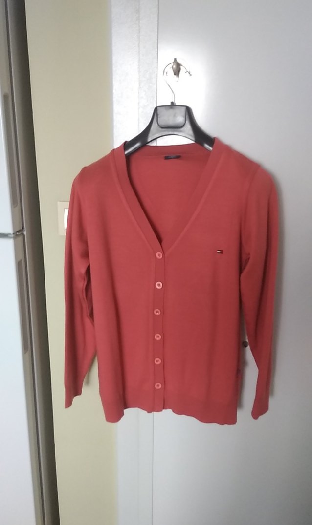 Kadınlar için düğmeli, uzun kollu ve yuvarlak yakalı pamuk hırka. Rahat kesimi ve sade kırmızı rengiyle günlük kullanıma uygundur.